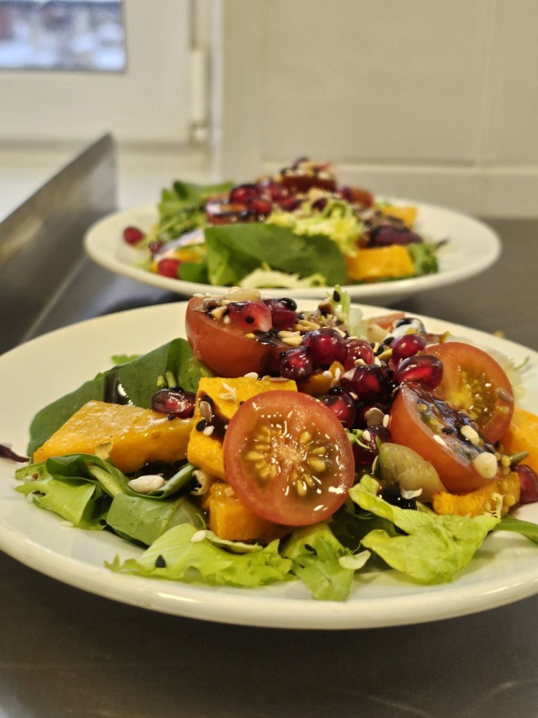 - Салат с запеченной тыквой и гранатом;