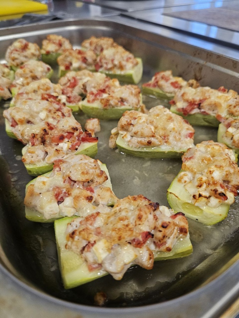 - Лодочки из кабачка с курочкой и сыром Фета.