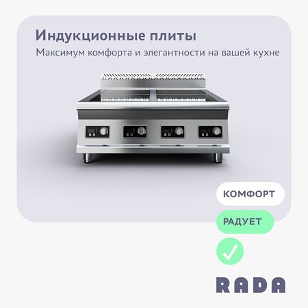 Индукционные плиты Rada™ — это идеальный выбор для профи, которые не согласны на компромиссы с уровнем качества.