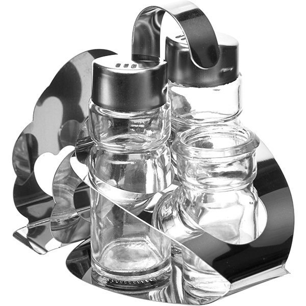 Набор для специй соль, перец, стак. д/зуб. , салф.; сталь нерж., стекло; H=115, L=85, B=100мм; серебрян.