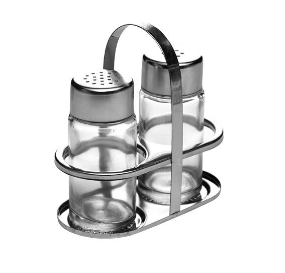 Набор соль/перец на подставке; сталь нерж., стекло; 50мл; H=100, L=105, B=55мм; серебрян., прозр.
