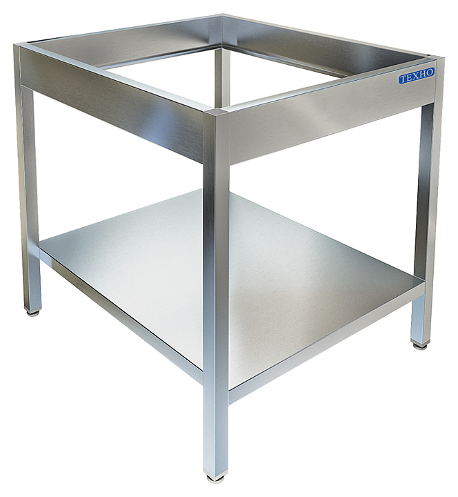 Открытая разборная подставка из трубы нержавеющей стали марки AISI 430 толщиной 1,2мм, полка из нержавеющей стали марки AISI 430 толщиной 0,8мм. Регулируемые опоры. Поставляется в разобранном виде.