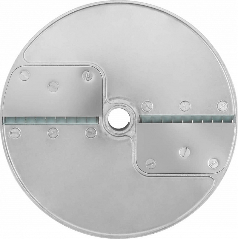 Устанавливается в рабочий отсек овощереки на вал двигателя, используется для моделей CL50/52/55/60/R502/R602. Предназначен для нарезания овощей соломкой 2Х8 ММ. Изготовлен из алюминия.