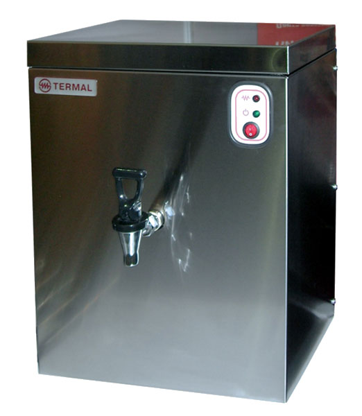 Имеется защита от попадания сырой воды в сборник кипятка в случае засорения клапана, выхода из строя автоматики. Это достигается за счет перелива сырой воды в пароотвод и, затем, в канализацию.