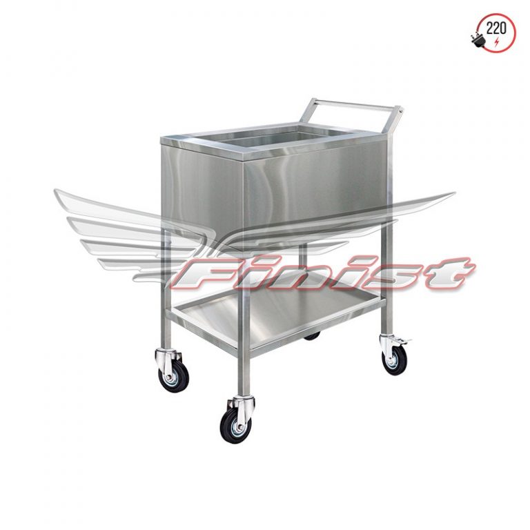 Корпус выполнен из нержавеющей стали. Изделие имеет четыре колесные опоры, две из которых с тормозным механизмом. Предусмотрена возможность использования специальных гастроемкостей стандартных размеров (GN 1/1, GN 1/2, GN 1/3).