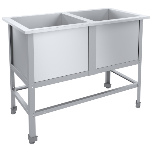• Моечная емкость сварная изготовлена из нержавеющей стали марки AISI 430 толщиной 0,8 мм. С отверстием диаметром 52 мм для установки выпускного сифона. Ножки оснащаются винтовыми опорами, позволяющими регулировать высоту ванны. Упаковка гофрокартон.