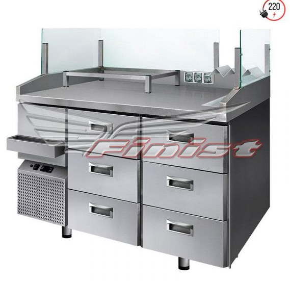 Шесть выдвижных гастро — нормированных ящиков обеспечивают хранение необходимых ингредиентов в охлажденном состоянии.