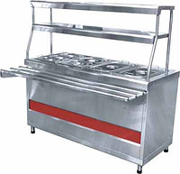 Предназначен для хранения в горячем виде первых и вторых блюд в гастроемокстях на линии раздачи. Внизу нейтральны шкаф для хранения кухонного инвентаря. Способ обогрева - "сухим" горячим воздухом. Плавная регулировка температуры от 30 до 85 град. Двойная полка над мармитом, лампа подсветки, гастроемкости и направляющие для подносов входят в комплект поставки. Регулируемые  по высоте ножки. Кашированный