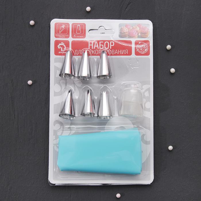 Набор кондитерский Доляна, 8 предметов: 6 насадок d=1,5 см, мешок 26 см, адаптер, насадки МИКС
