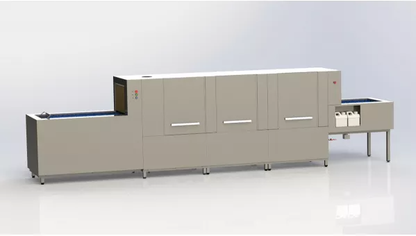 Машина посудомоечная секционная МПС-3200-Пр правого исполнения (движение транспортера осуществляется справа налево) с теоретической производительностью 3200 тарелок в час.