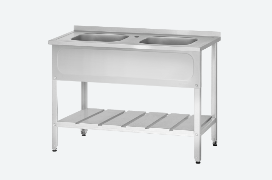 Ванна моечная ВМЦн - 1400*600*860 "Norma Inox", 2 м/о 500*400*250, борт, отв. д/смесит., экран (ножка угловая)