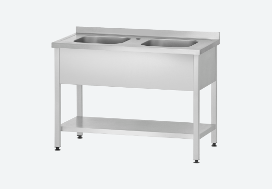 Ванна моечная ВМЦп - 1200*700*860 "Profi Inox", 2 м/о 500*500*300, борт, отв. д/смесит. (полка сплошная)