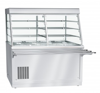 Прилавок-витрина холодильный с нейтральным шкафом предназначен для хранения, демонстрации и раздачи холодных закусок, третьих блюд и охлажденных напитков потребителю. ВНИМАНИЕ: Линия раздачи "HOT-LINE" изготавливается по заказу с панелями только из нержавеющей стали! Дополнительно можно приобрести комплект торцевого и комплект колес.