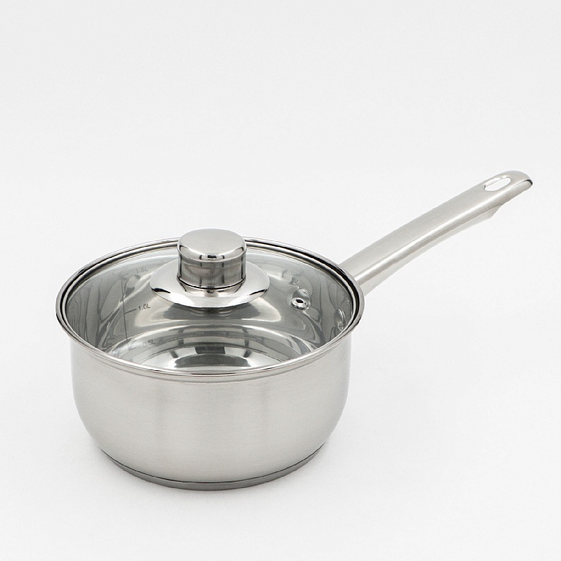 Ковш из нержавеющей стали «Гретте», 1,5 л, d=16 см, стеклянная крышка, металлическая ручка, индукция