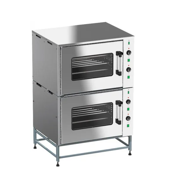 Двойное остекление дверок жарочного шкафа и лампы освещения камер шкафа позволяют, при закрытых дверках, визуально контролировать состояние приготавливаемых продуктов.