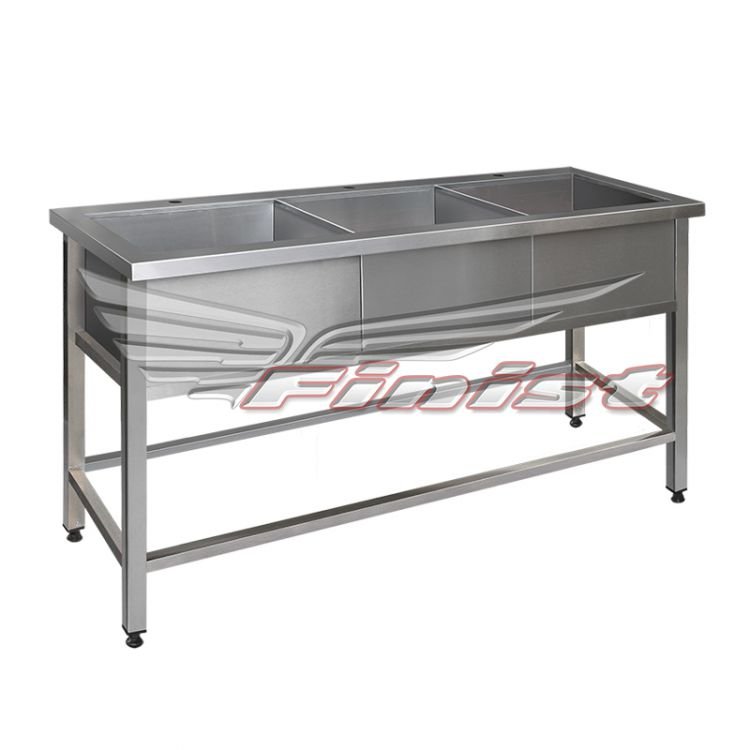Ванна ВМП-3 1500*500*850 борт, отв. д/смесит. на каждую мойку, локтев. смесит. 3шт., сифон с разрыв. струи 3шт., каркас сварной труба нерж. 40/40 мм.