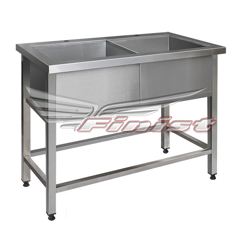 Ванна ВМП-2 1000*500*850 св.мойка, борт, отв. д/смес.на кажд. мойку, локт. смес.на кажд., сифон с разр. струи
