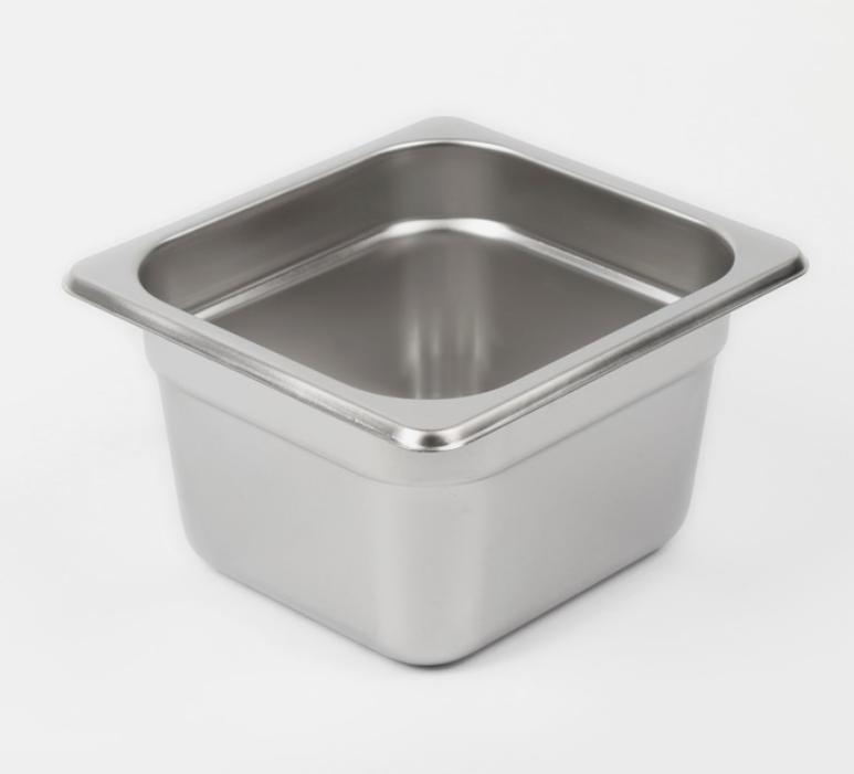 Гастроёмкость 1/6 из нержавеющей стали, 100 мм, 17,6×16,2×10 см, толщина 0,8 мм