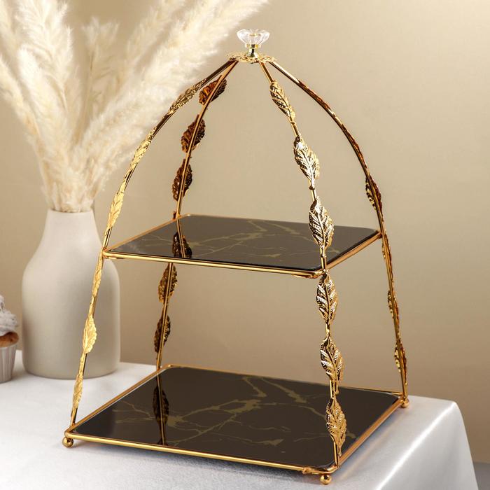Подставка для десертов 2-х ярусная, «Мрамор», 26*26*37 см, цвет металла золотой
