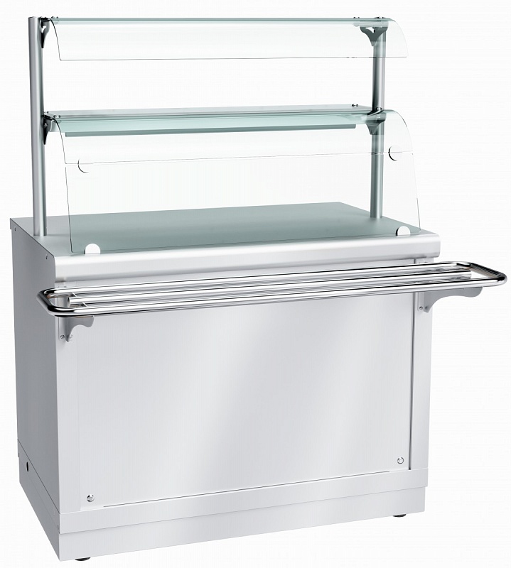 Прилавок для горячих напитков ПГН-70Х-04, 1120 мм, 2 розетки, 2 стеклянные полки, LED-подсветка, съемный нерж. фасад, направляющие в комплекте