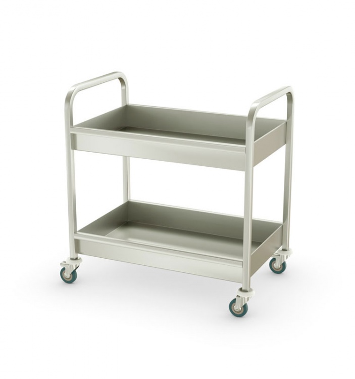 Тележка для сбора посуды ТСП 800*500*850/950,2 поддона, нерж.,aisi 430, ручка с 2-х сторон, колеса ф100мм, нерж. сталь aisi 430