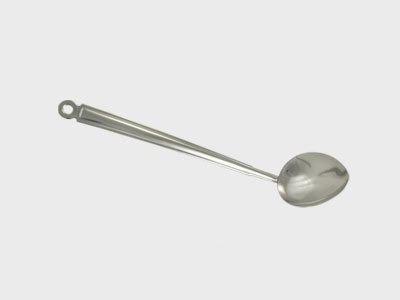 Ложка выполнена из нержавеющей стали - экологичного и безопасного материала. Он не вступают в окислительные реакции с продуктами во время готовки.