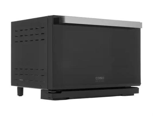 Прибор CASO SteamChef оснащен духовкой на 25 л, нагревающейся в диапазоне от 40°C до 220°C. Предусматривается наличие гриля и конвекции, а также внутреннего покрытия из нержавеющей стали, легко очищающегося от загрязнений. Поставка осуществляется со съемным резервуаром для воды, двумя противнями и поддоном, термозащищенной рукавицей. Прибор весит 13.4 кг и обладает размерами 51x35x49.5 см.