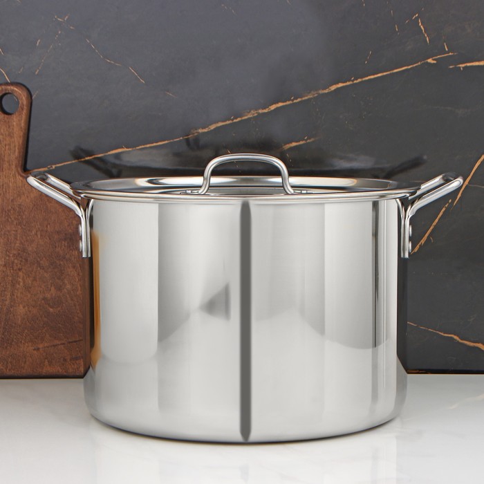 Кастрюля «Общепит», 20 л, d=35 см, h=23 см, металлическая крышка, клёпаные ручки