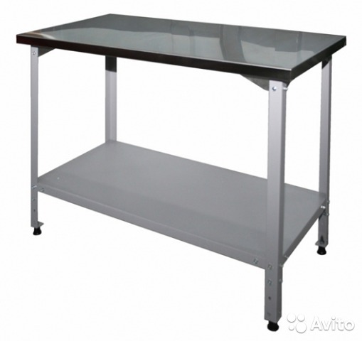 Столы производственные состоят из столешницы - толщиной 35 мм из шлифованной нержавеющей стали с полимерно-порошковым покрытием. В ножках стола имеются пазы для возможного регулирования уровня полки. Каркас стола оснащен регулируемыми опорами для компенсации неровностей пола. Они поставляются упакованными, в разобранном виде.