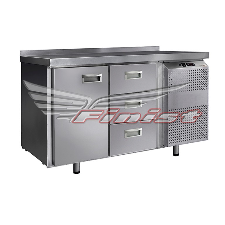 Стол охлаждаемый СХС-700-1/3, 1400*700*850, борт, 1 дверь, 3 ящика, агрегат сбоку, задн. стенка оцинк.