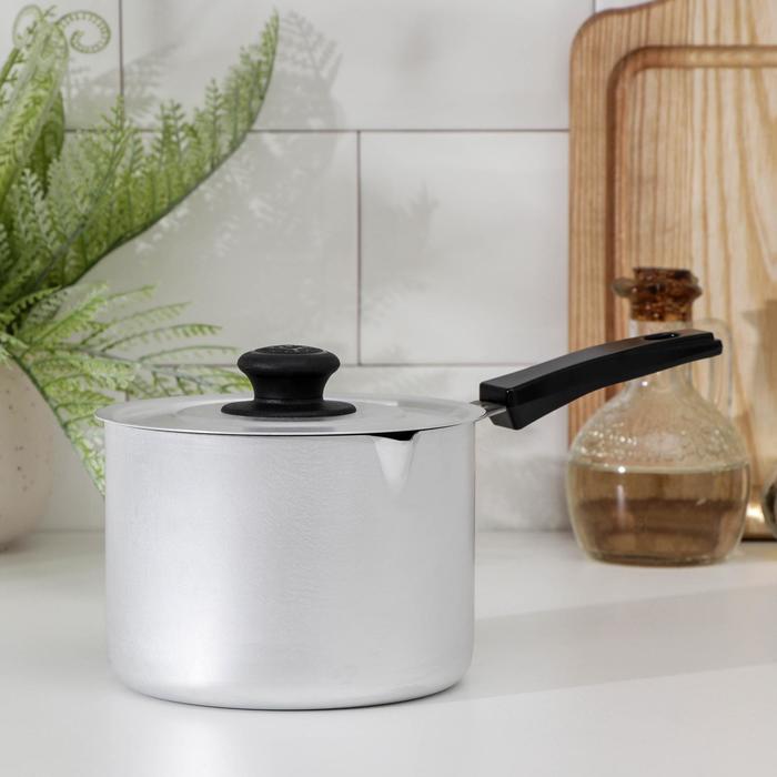 Ковш 1 л, карбоновая ручка, металлическая крышка, цвет серый