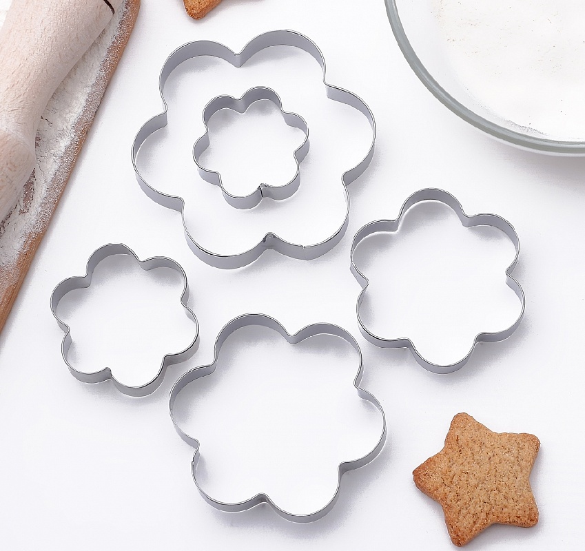 Набор форм для печенья Доляна "Ромашка", 5 шт, 7,8×7,8 см, цвет хромированный