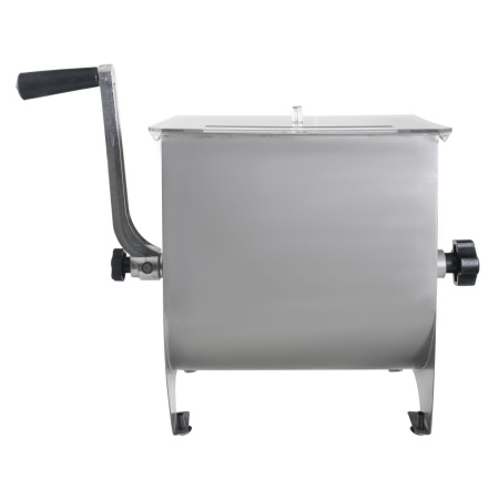 Процесс перемешивания осуществляется ручным способом при помощи оператора, путем вращения ручки фаршемеса. У оборудования лопастной тип месильного органа, что позволяет ему смешивать продукт с помощью 4-ёх достаточно больших лопастей, установленных на валу. Длительность перемешивания определяется типом фарша, продукта и технического процесса.