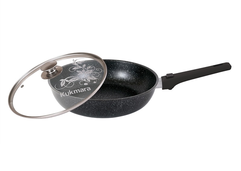 Сковорода Kukmara 240/60 мм со съемной ручкой, стеклянной крышкой - изготовлена из литого алюминия и покрыта инновационным антипригарным мраморным покрытием нового поколения на водной основе, усиленным сверхтвердыми частицами минералов.