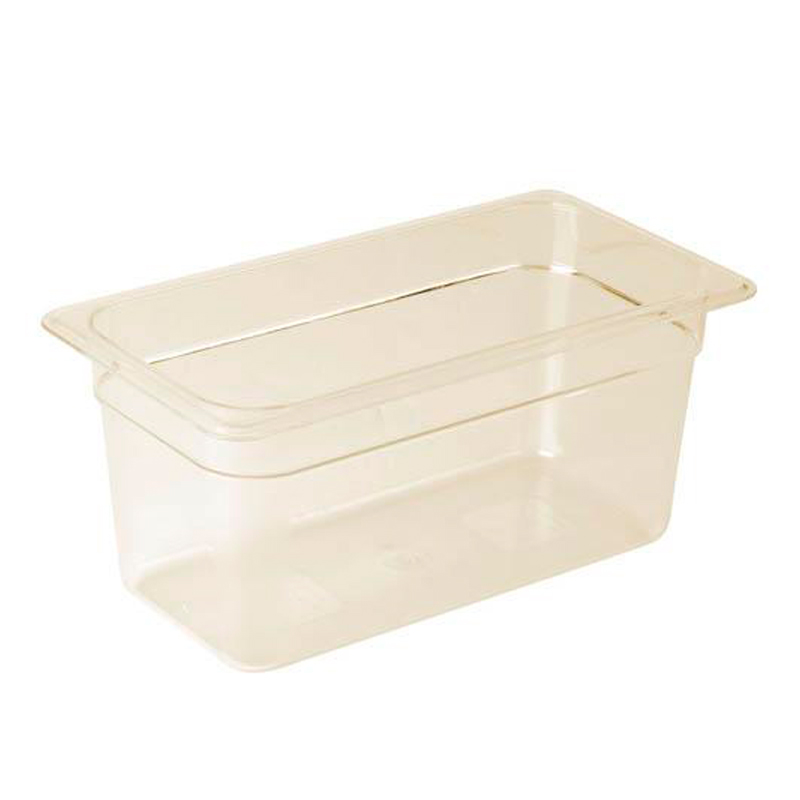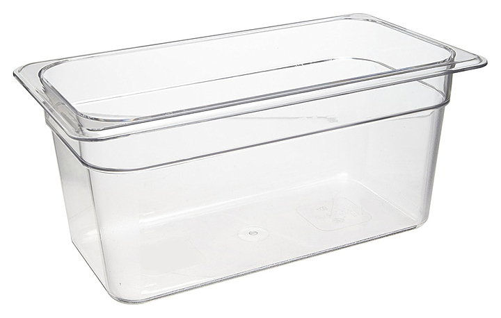 Гастроемкость Hurakan GN-K 1/3-150. Гастроемкости из поликарбоната отличаются малым весом, но при этом ударопрочностью и стабильной формой, термостойкостью от -40С до +100С, не имеют вкуса и запаха, не оказывают вредного влияния на хранимые в них блюда, пригодны к автоматической мойке в посудомоечных машинах, удобны тем, что продукт находящийся в нутрии всегда видно. Для демонстрации готовой продукции потребителям лучше использовать прозрачные гастроемкости из поликарбоната GN-K.