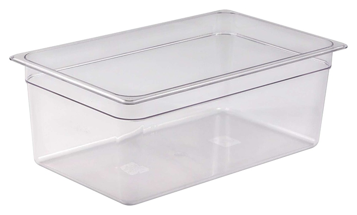 Гастроемкость Hurakan GN-K 1/2-100. Гастроемкости из поликарбоната отличаются малым весом, но при этом ударопрочностью и стабильной формой, термостойкостью от -40С до +100С, не имеют вкуса и запаха, не оказывают вредного влияния на хранимые в них блюда, пригодны к автоматической мойке в посудомоечных машинах, удобны тем, что продукт находящийся в нутрии всегда видно. Для демонстрации готовой продукции потребителям лучше использовать прозрачные гастроемкости из поликарбоната GN-K.