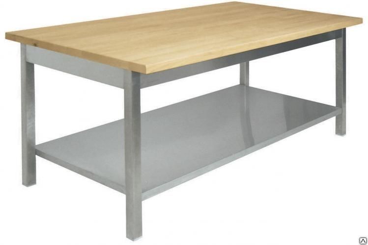 Стол кондитерский СКП 1500*800*850 полка сплошная нерж, столешница бук 40мм, каркас сварной труба нерж.