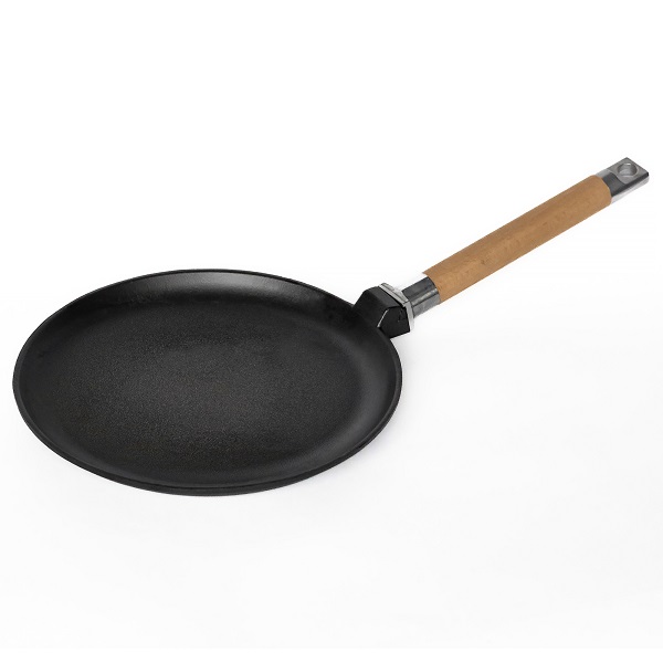 Сковорода для блинов d=22 см. h=1,7 см. 0,5 л. чугун. со съем дерев. ручкой /1/