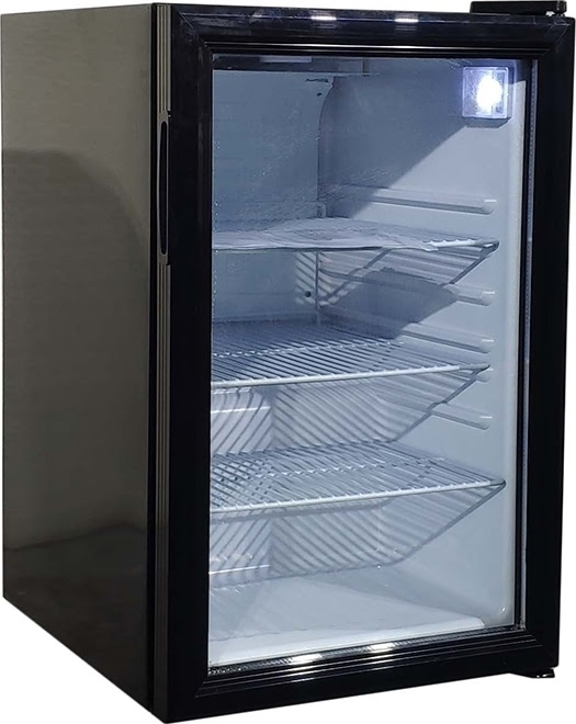 Внутренняя подсветка камеры и распашная стеклянная дверца обеспечивают отличный обзор продуктов, тем самым привлекая внимание посетителей. Корпус изготовлен из стали и окрашен в чёрный цвет.
