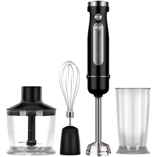 • документация, мерный стакан, насадка-блендер, насадка-венчик, насадка-измельчитель