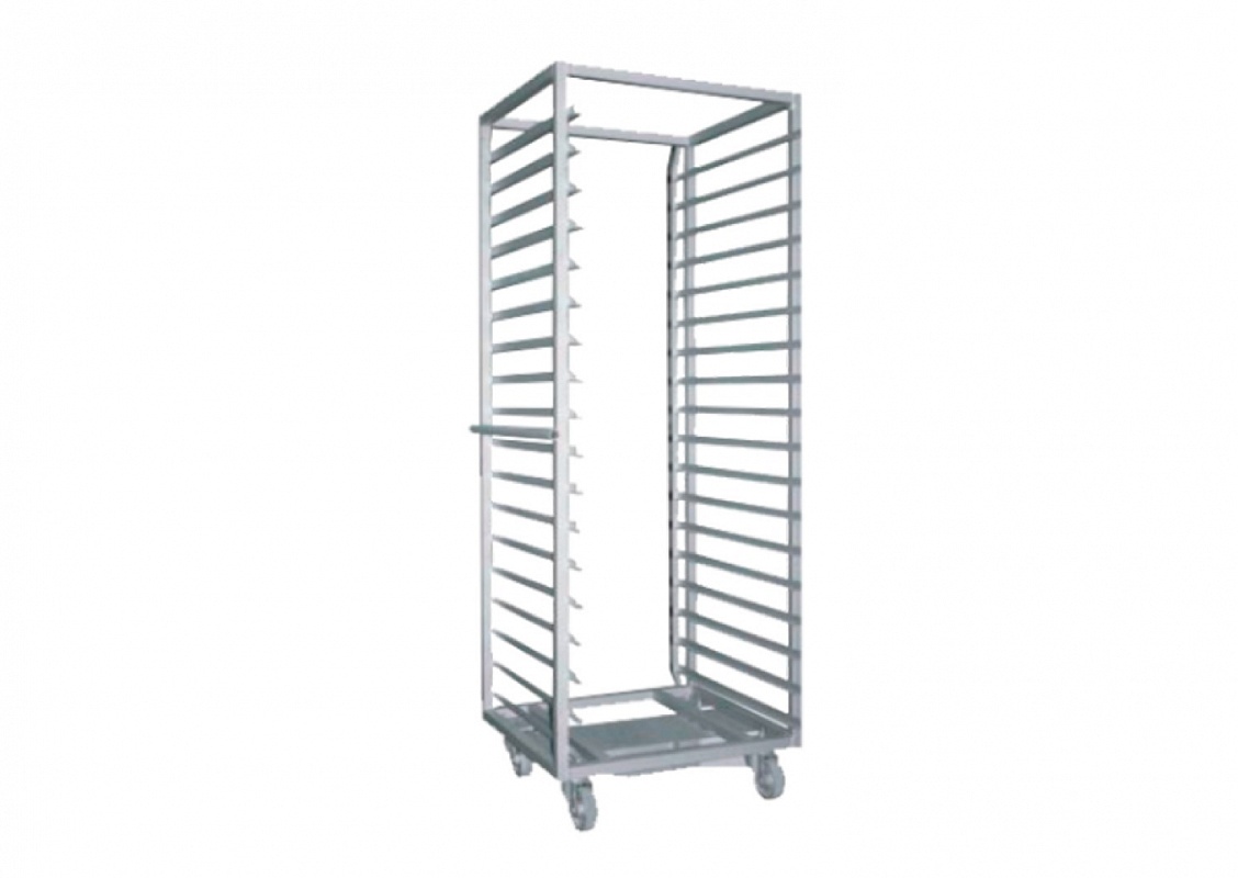 Стеллажная тележка предназначена для работы в качестве технологическихой тележеки в ротационную печь, а также для расстойки и транспортировки тестовых заготовок при работе с хлебопекарными ротационными печами «Муссон-ротор» 55.
