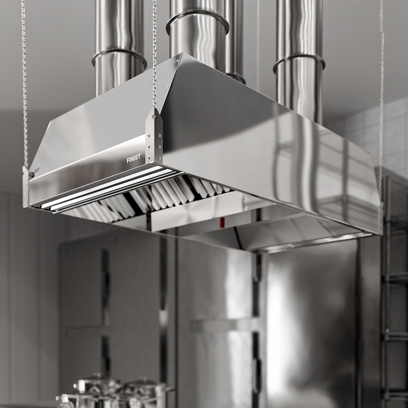 Зонт ЗПВН-04/03 1800*1800*400 приточно-вытяжной, островной, нерж. сталь,  комплект для монтажа, светильник 1200- 2 шт