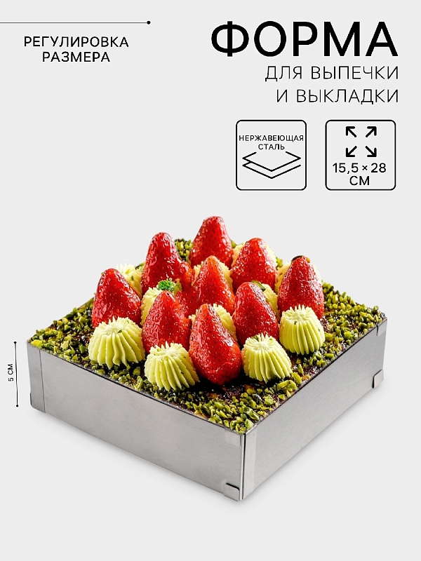 Форма для выкладки и выпечки с регулировкой размера, 15.5×28 см, h=5 см, серебристая
