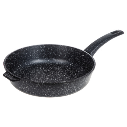 Сковорода для жарки из литого алюминия с антипригарным покрытием PFLUON COOKMARK, толщина дна 6,3 мм, толщина стенок 3,6 мм. Не содержит PFOA. Предназначена для использования на газовых, электрических, стекло-керамических плитах. Материал ручки – бакелит, софт-тач. Не рекомендуется нагревание выше 220 градусов.