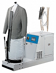 Пароманекен Battistella ZEUS A с парогенератором предназначен для обработки верхней одежды, оснащен электронным управлением (16 программ) и ручной регулировкой прижимных планок. В комплекте имеется встроенный парогенератор емкостью 10 литров.