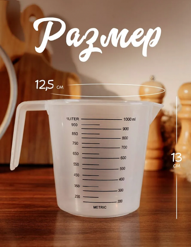 Мерный стакан, 1 л, с ручкой, с носиком, пластик
