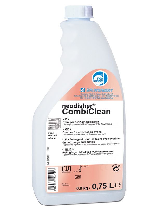 Neodisher Combi Clean - специальное моющее средство для автоматической и ручной мойки рабочей камеры пароконвектомата. Отличается высокой моющей и отделяющей способностью, а также антибактериальным эффектом. При его использовании пищевые остатки быстро размягчаются и удаляются с поверхности духовки.