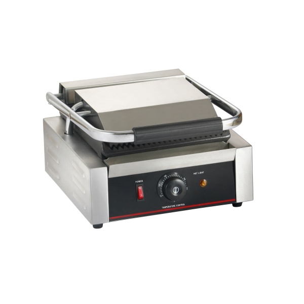 Гриль контактный Hurakan HKN-PE22R - предназначен для обжаривания стейков и сосисок, приготовления сэндвичей, полуфабрикатов, подогрева булочек, гамбургеров, хот-догов на предприятиях общественного питания и торговли. Высокая скорость приготовления достигается благодаря встроенным в обе части аппарата тепловым элементам, которые плотно прилегают к продукту. Модель оснащена регулируемым термостатом, индикатором нагрева и лотком для сбора жира.