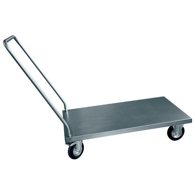 Тележка грузовая ТГ- 8-3 (210000801236) - предназначена для транспортировки кухонного инвентаря и продуктов питания на предприятиях общественного питания и торговли. Модель оснащена 2 фиксированными и 2 поворотными колесами.