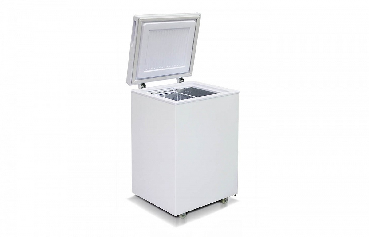 Морозильный ларь Бирюса 100VK позволяет замораживать и хранить большой объем продуктов. Габариты такого устройства составляют 56.5х81.4х55.4 см. Корпус представленной модели выполнен в белой расцветке. Для его производства использовались металл и пластик. Внутри камеры расположена подвесная корзина.